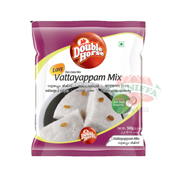 Double horse presents vattayappam mix, which includes ingredients such as rice flour, lentil, yeast, vanilla. It has a shelf life of 3 months and once opened store in an air tight container.